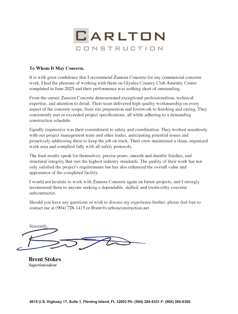 I had an exceptional experience with Zamora Concrete Company. Corey, the Director of Operations is who I worked with to plan the project. His team was professional, punctual and highly skilled. They delivered outstanding quality on my garage project with precise attention to detail. The crew was courteous, kept the worksite clean and completed the job on time. I highly recommend Zamora Concrete for anyone looking for reliable and top notch concrete services. I’m thrilled with the results and would definitely hire them again for future projects.